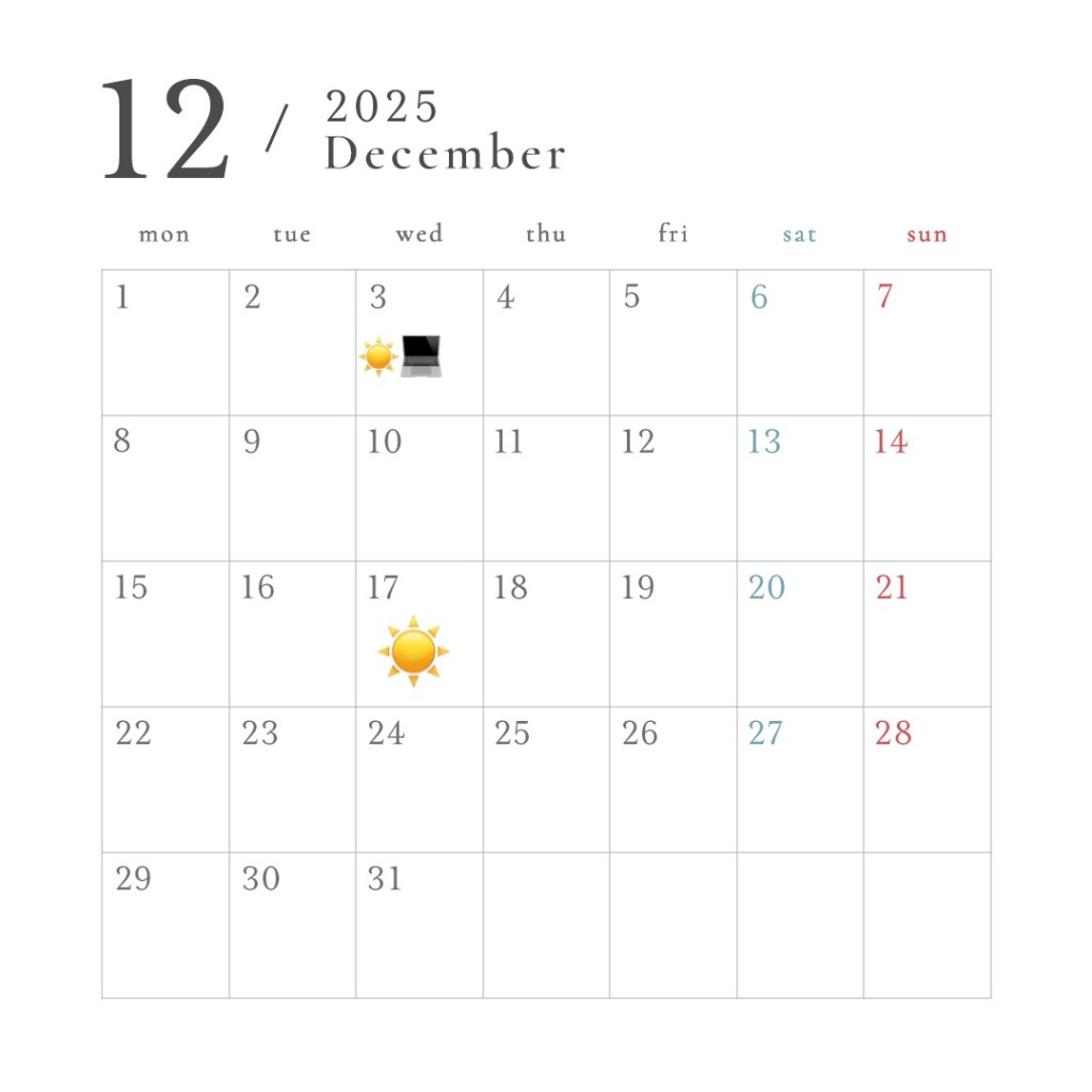 ☆プライベートクラスについては前日までの個別相談を受け付けます。(上記カレンダーにない日程でもお受けできます)