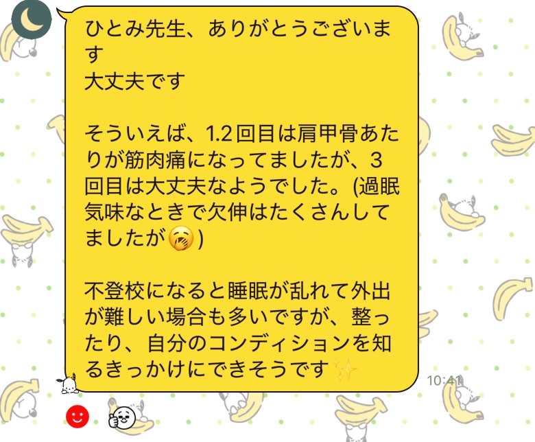 不登校で睡眠障害にお悩みの中3娘さんと一緒にご参加くださっているママからのメッセージです。